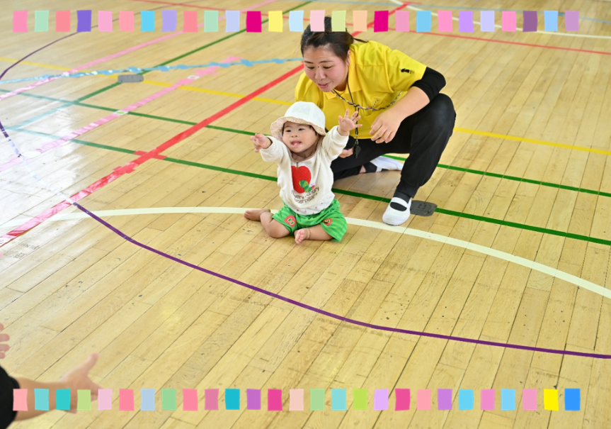 いつもと違う雰囲気に涙を見せる場面もありましたが、競技が始まると不思議そうな顔をしながら保育士や保護者の方々と一緒に最後まで参加することができました😊