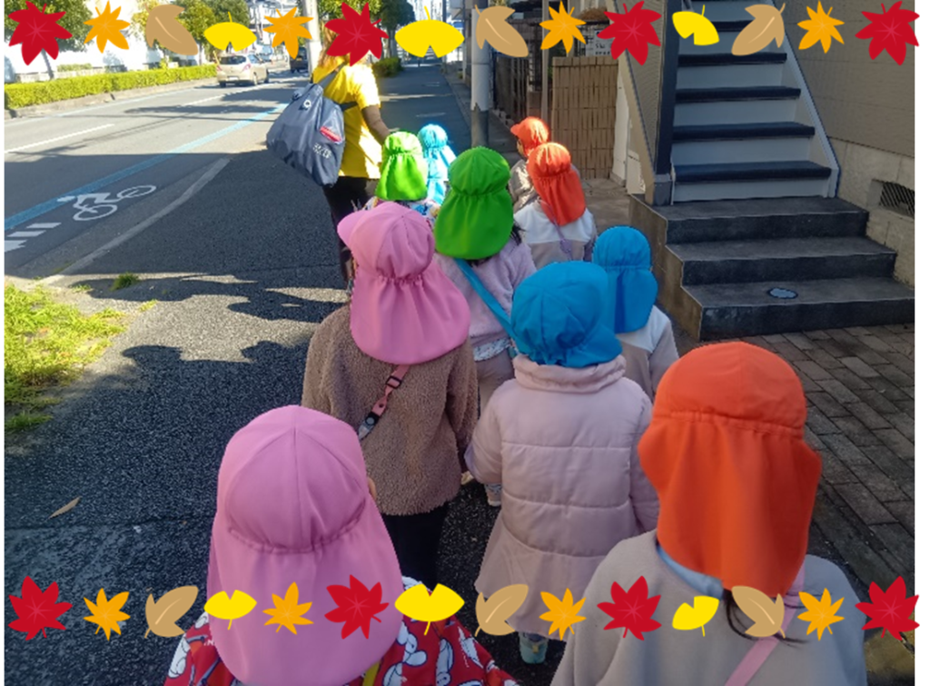 散歩中は、「風が冷たいね~」「どんぐりあるよ」と秋の自然の変化に気付き保育s士や友だちに知らせる姿が見られます😄