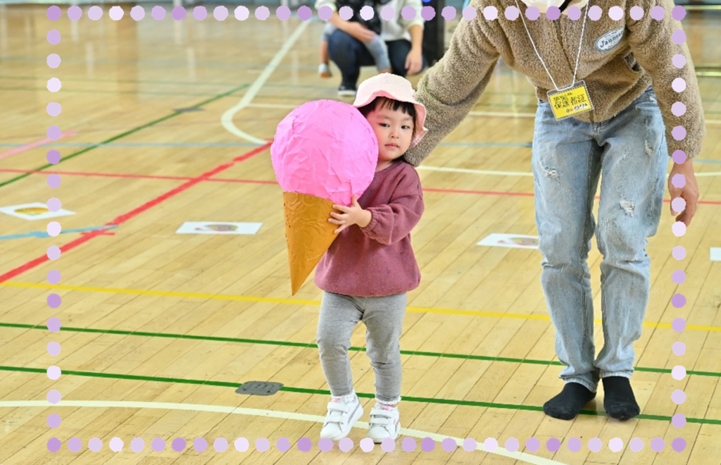 親子競技では、動物🐰の看板に食べ物を届けたり、自分で引いたカードと同じ色のアイスクリーム🍧を完成させ運んだり、保護者の方と一緒に楽しんで参加することができました。