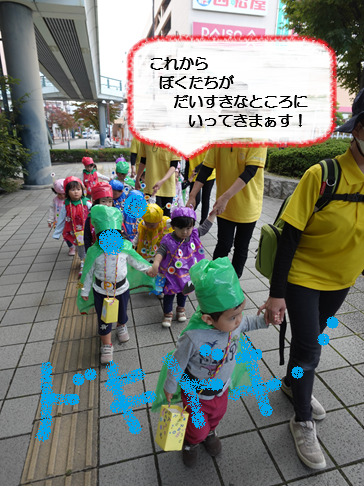 衣装を着て散歩に出かけるのは、いつもと違うので、少しハードルが上がる活動です。