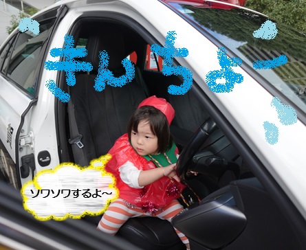 そして、大サービスの「パトカー乗ってもいいですよ!」のおすすめを受けて憧れのパトカーに、しかも運転席に乗せてもらいました。