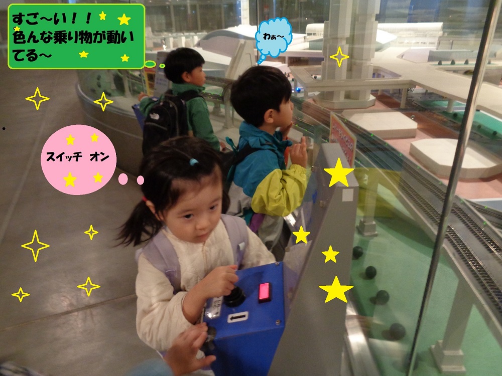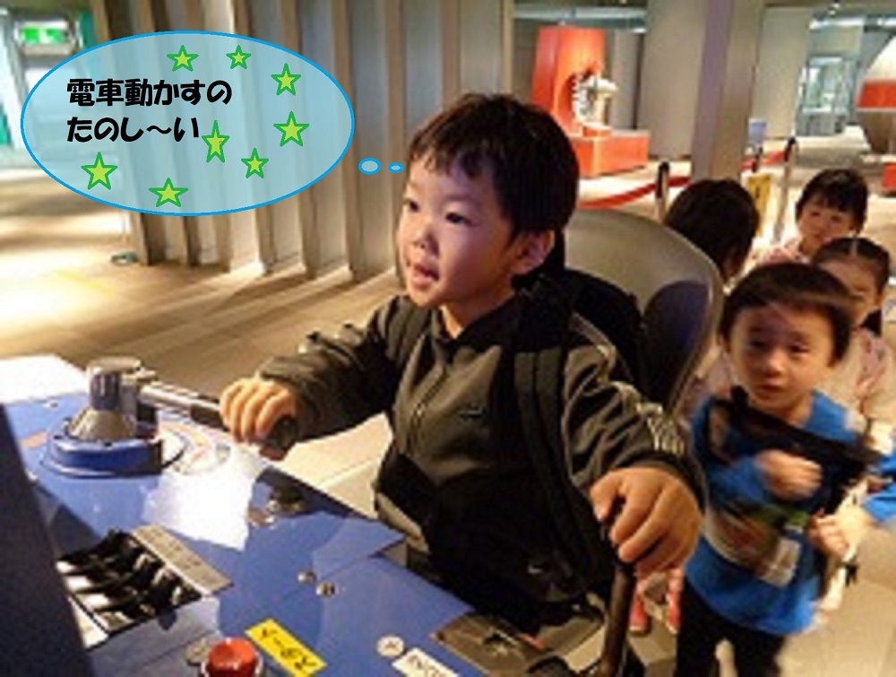 乗り物の展示を見たり触ったりしながら回ったあとは、お待ちかねのお弁当!!