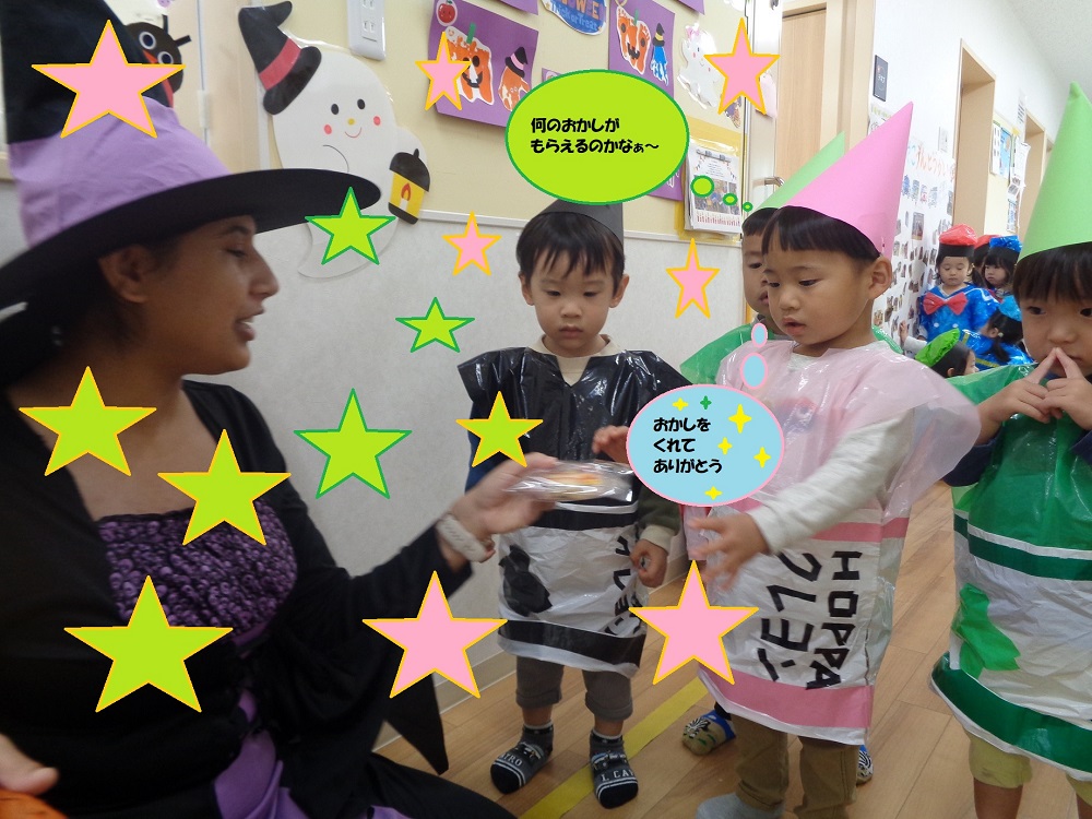 「トリック・オア・トリート!」のかけ声でお菓子ももらいました🍭