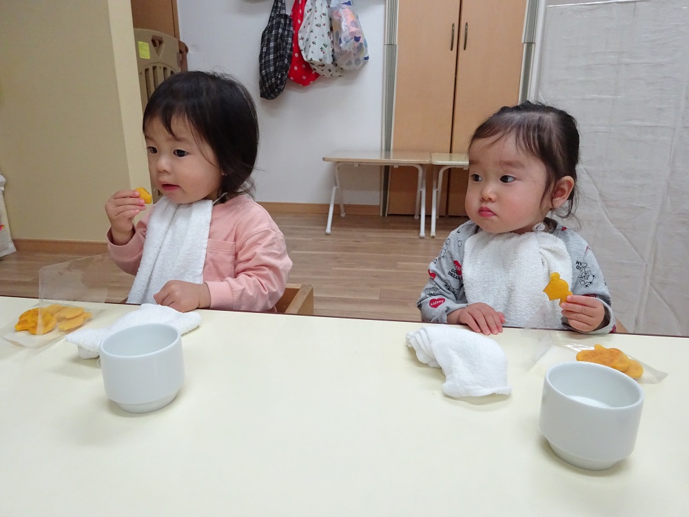 「かぼちゃあった」「ねこさんだよ」クッキーの形を見て言いながら、みんな大事そうに食べていました。