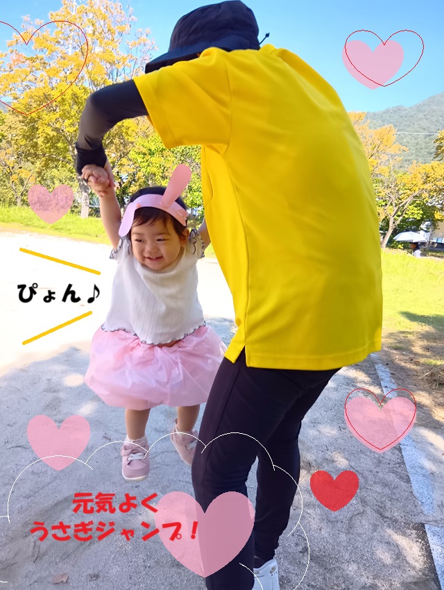 このできごとをきっかけに、「ぴょん!」が言えるようになり、「ぴょんぴょん」の掛け声で飛ぼうと身体を動かすようになりました。