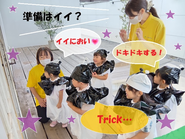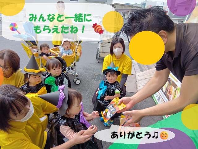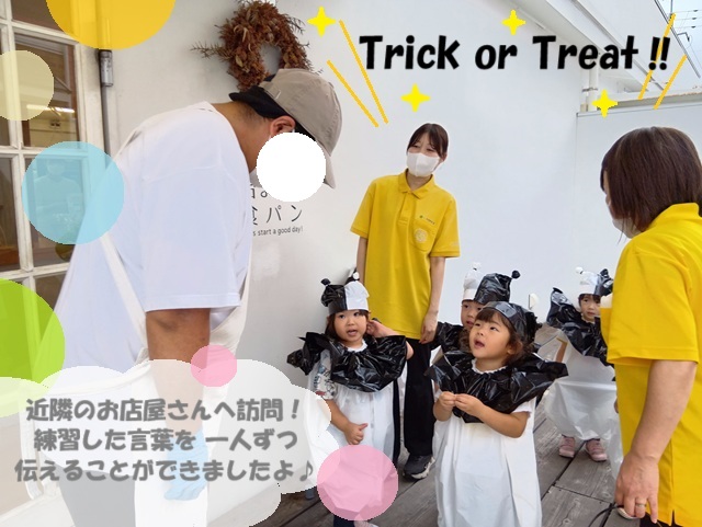 当日は、「トリック・オア・トリート!お菓子くれなきゃいたずらしちゃうぞ!」の練習の成果をしっかり発揮!