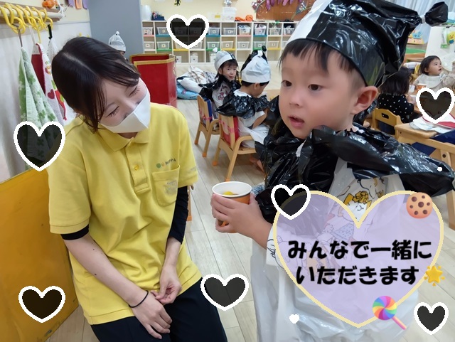 ハロウィンの活動を通して、子どもたちの「知らないものを楽しむ心」「表現を楽しむ気持ち」を大切に育てていきたいと思います。
