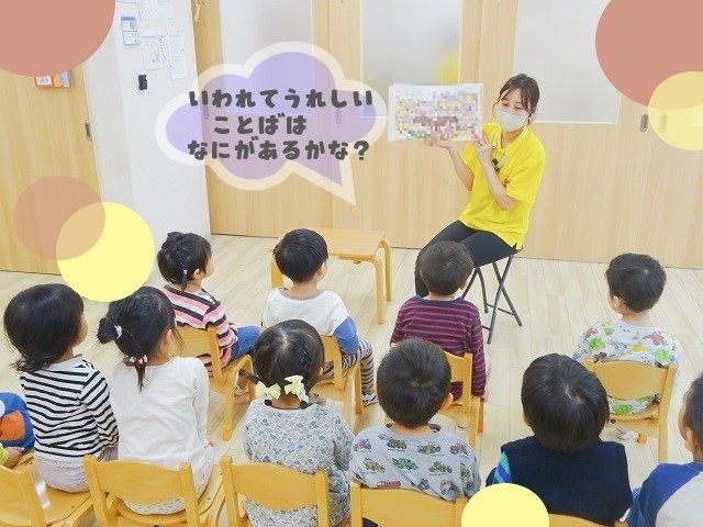 カペラ組(3歳児クラス)では『ふわふわとちくちく』という絵本を通し、こころが元気になる言葉やこころが痛くなる言葉があることを学びました!