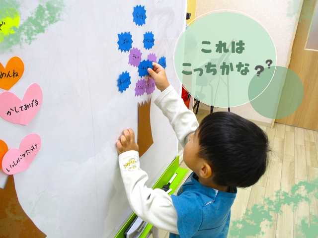 ベガ組(4歳児クラス)では、“ふわふわことば”と“ちくちくことば”の仲間分けに挑戦しました🔥