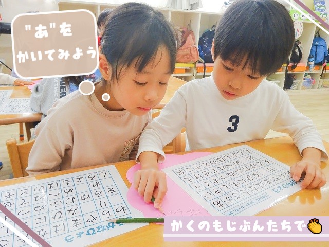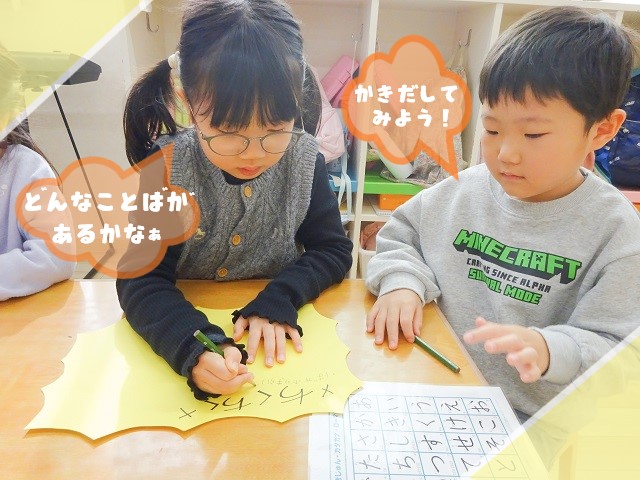 ひらがな表を見ながら自分たちで書き進めていくシリウス組さん✐