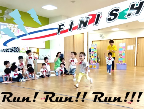 0歳児デネブ組さん、1歳児スピカ組さん、2歳児リゲル組さんは園内での開催となり、遊戯室と幼児クラスをつなげた広いスペースで、思いきり体を動かすことを楽しみました💓