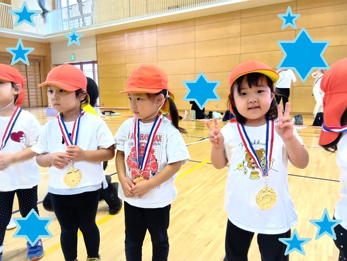 お母さんやお父さんも一緒のイベントですが、みんなにこにこ笑顔😄でかけっこや遊戯💃を頑張った子どもたち。