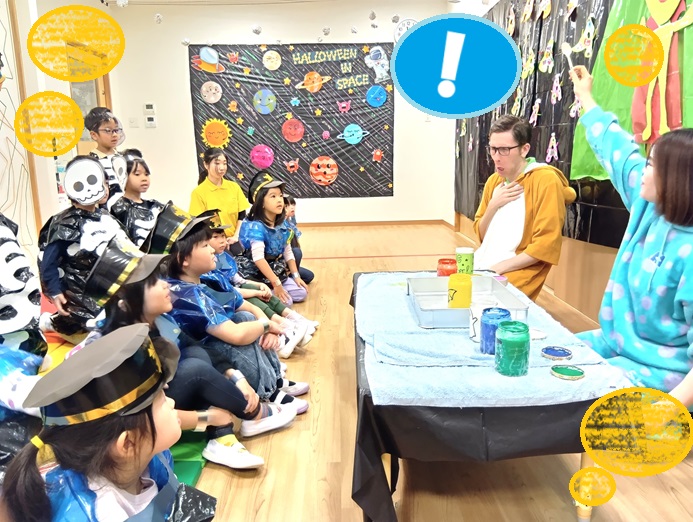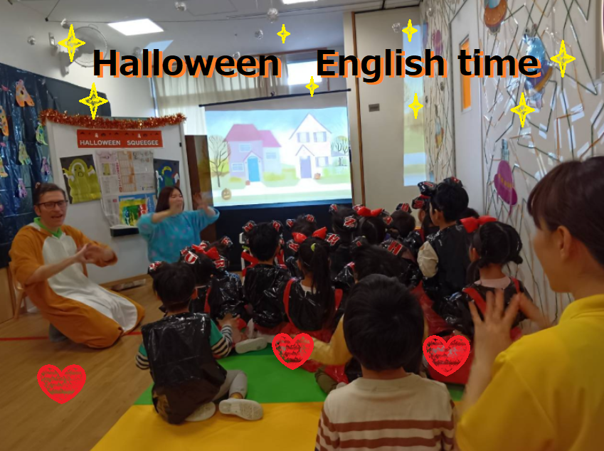 English timeでは、おばけ👻ペイントやスライムの手触りをドキドキしつつも楽しみました♪✋
