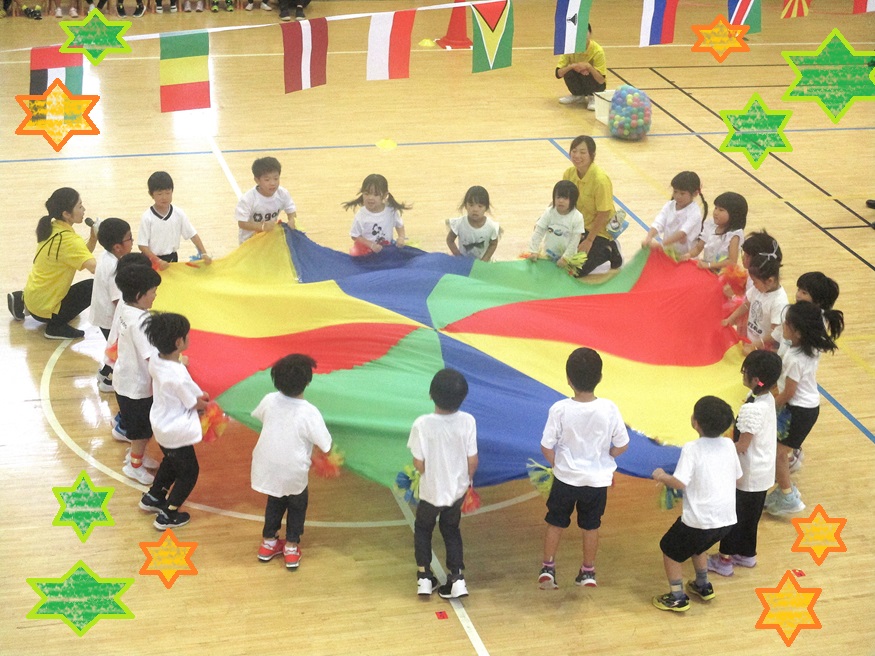 3歳児カペラ組さん、4歳児ベガ組さん、5歳児シリウス組さんの幼児クラス運動会は、近くにある津田沼小学校の体育館を借りての開催となりました。
