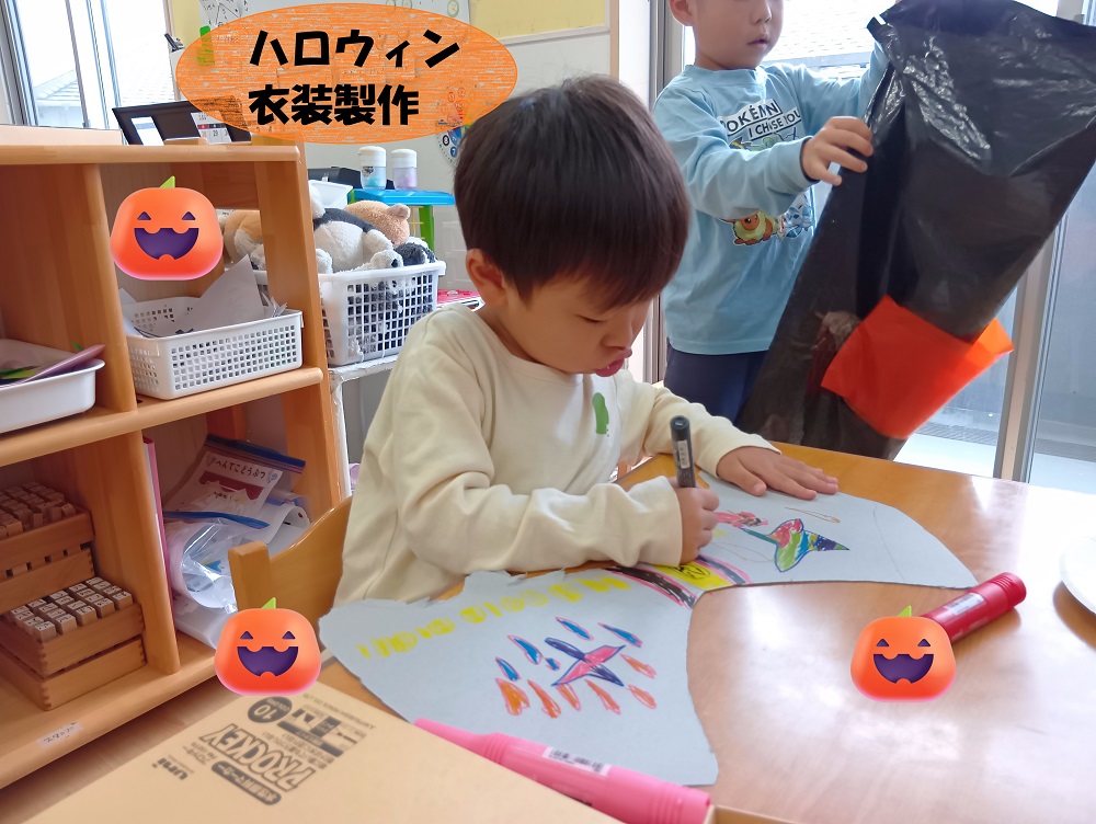 幼児クラスは自分たちで衣装の製作に取り組みました✂
