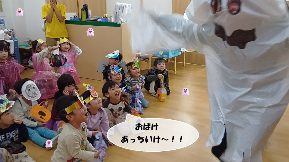次々と出てくる魔女やお化け、がいこつに怖がる…こともなく、大喜びの子どもたち😲✨