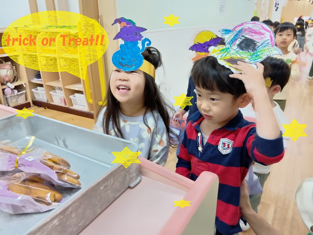 自分で作った衣装を身にまとった子どもたち、ネイティブのEnglish teacherたちが招待してくれたパーティに参加しました🎶
