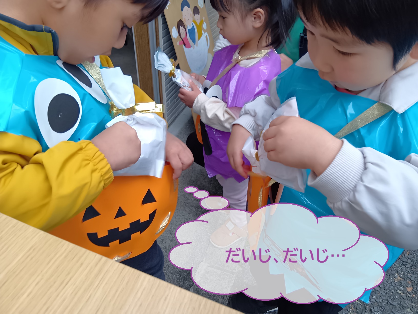 カバンをいっぱいにして保育園へ戻ってくると「たのしかったね!」「まじょいたね!」と口々に感想を伝えてくれました。