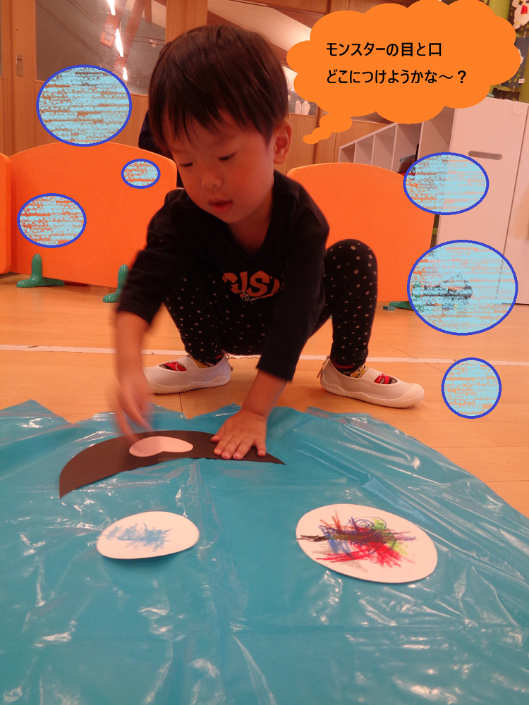 衣装づくりではクレパスを使ってモンスターの目を描いたり好きな形の口を自分で選び、楽しみながら完成させることができました❣
