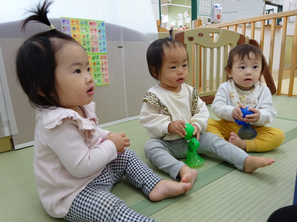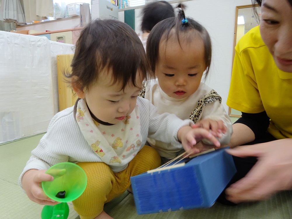 ひとつひとつ保育士が音を出して紹介していきます。