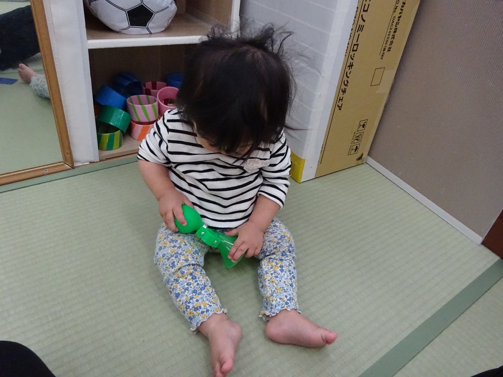 きれいな色とおもしろい形に興味を示し、しばらく持って遊ぶスピカさん。