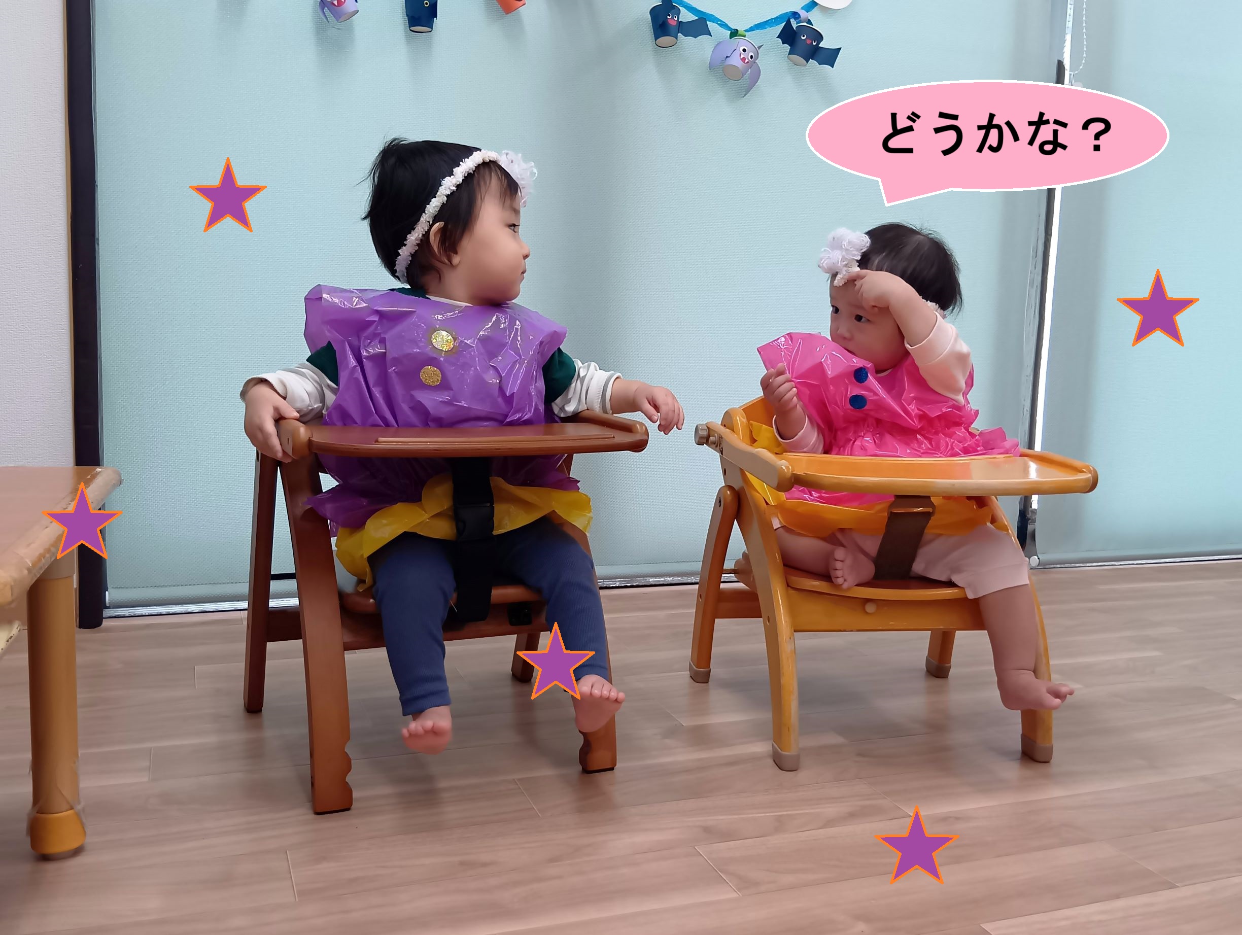仮装を身にまとったお友だちを見て、いつも違う様子に気付いたのかな?!♪