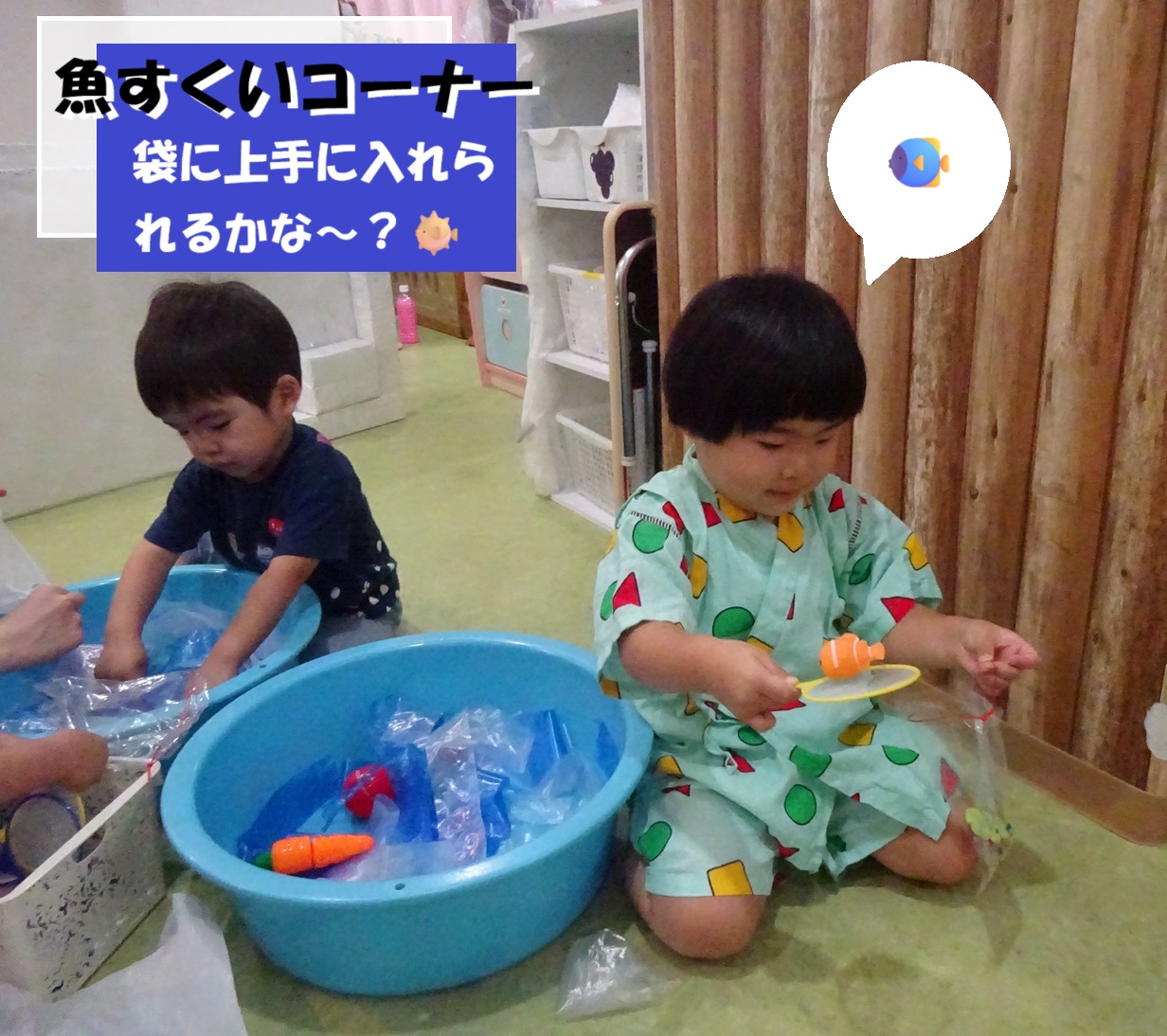 いつもと違う雰囲気にドキドキな様子もありましたが、安心できる保育者士と一緒にお祭りの雰囲気を楽しみました✨