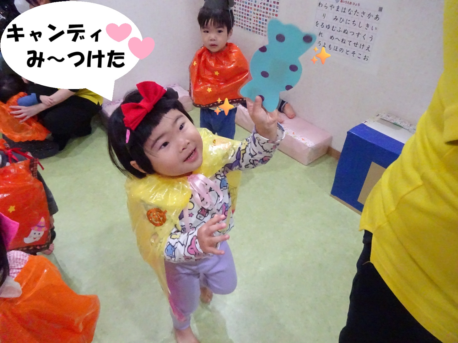 キャンディーの宝探しゲームでは、保育士のルール説明にしっかり耳を傾け楽しむ姿に、成長を感じました!