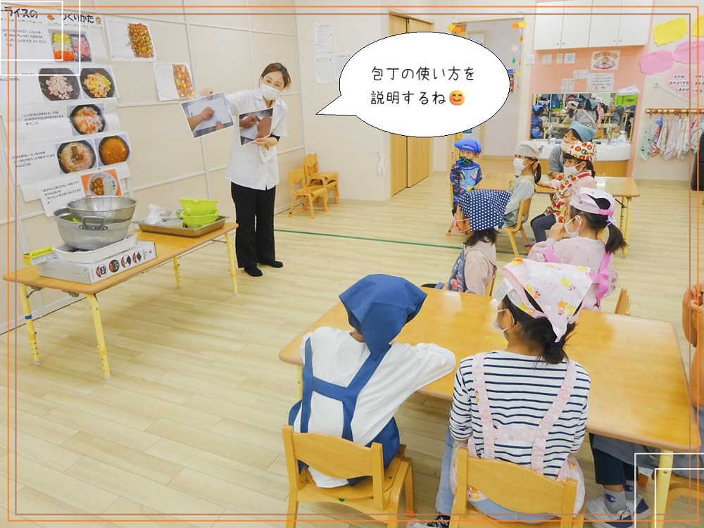 給食の先生が包丁の使い方を丁寧に教えてくれみんな真剣に聞いている様子でした😊