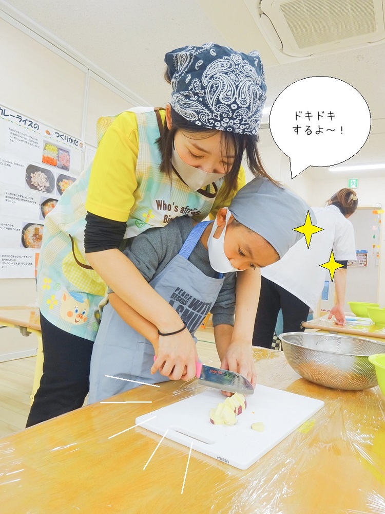 先生と一緒に包丁を持ってゆっくり野菜を切りました🥕