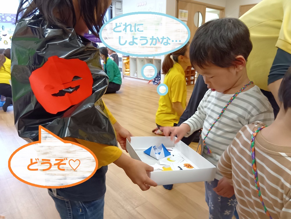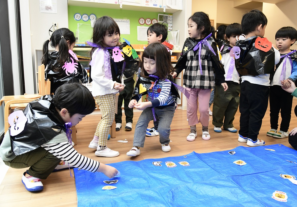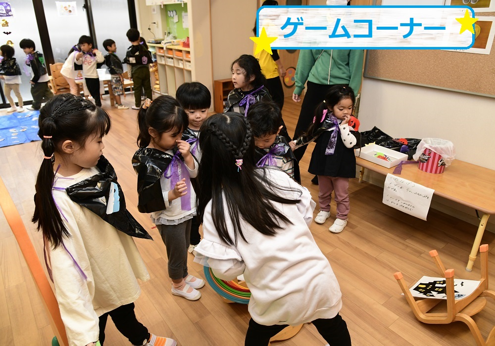 ハロウィンの日は、園内がワクワクいっぱいのゲームコーナーに大変身!