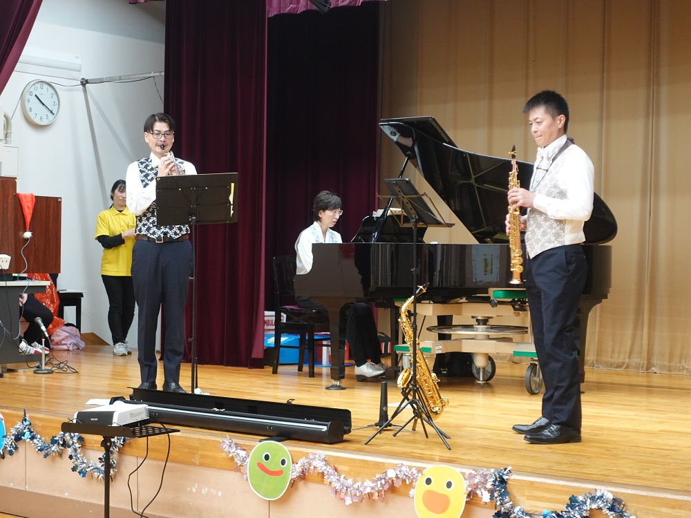 会場に響き渡る、サックス、 ピアノ、トランペットの美しい生演奏にうっとり✨優しい音色に、目を輝かせて耳を傾けていました。