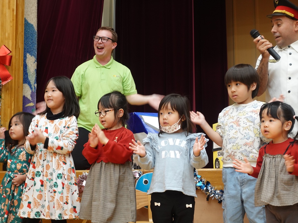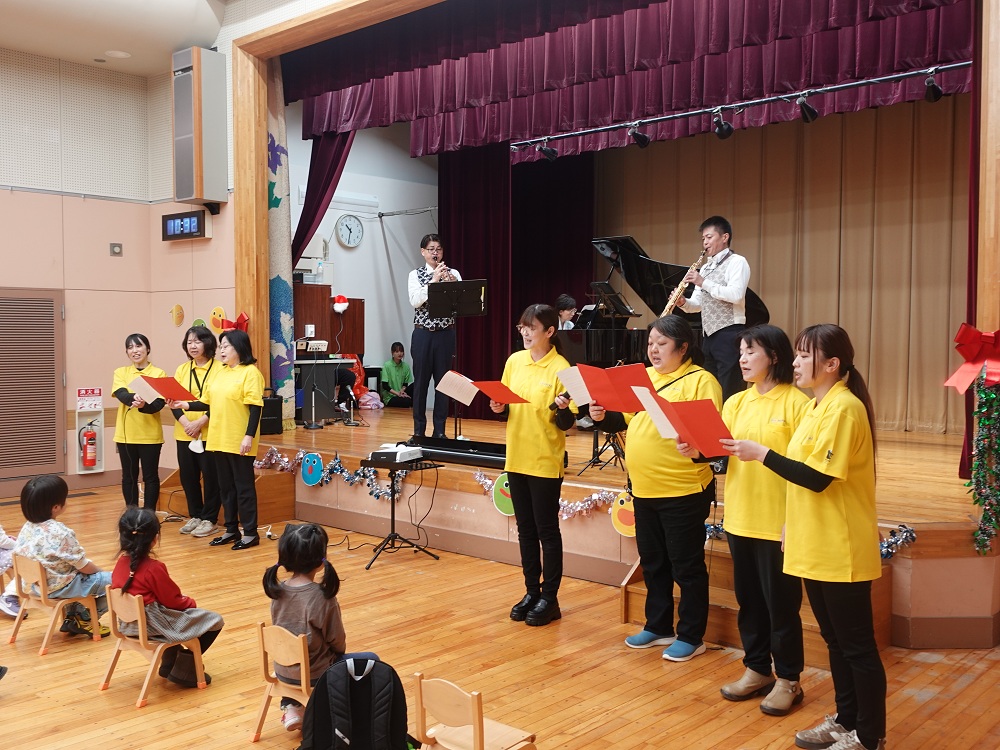 「赤鼻のトナカイ」では、子どもたちは手話を交えながら一緒に歌い、楽しいクリスマスの雰囲気が一層盛り上がりました。