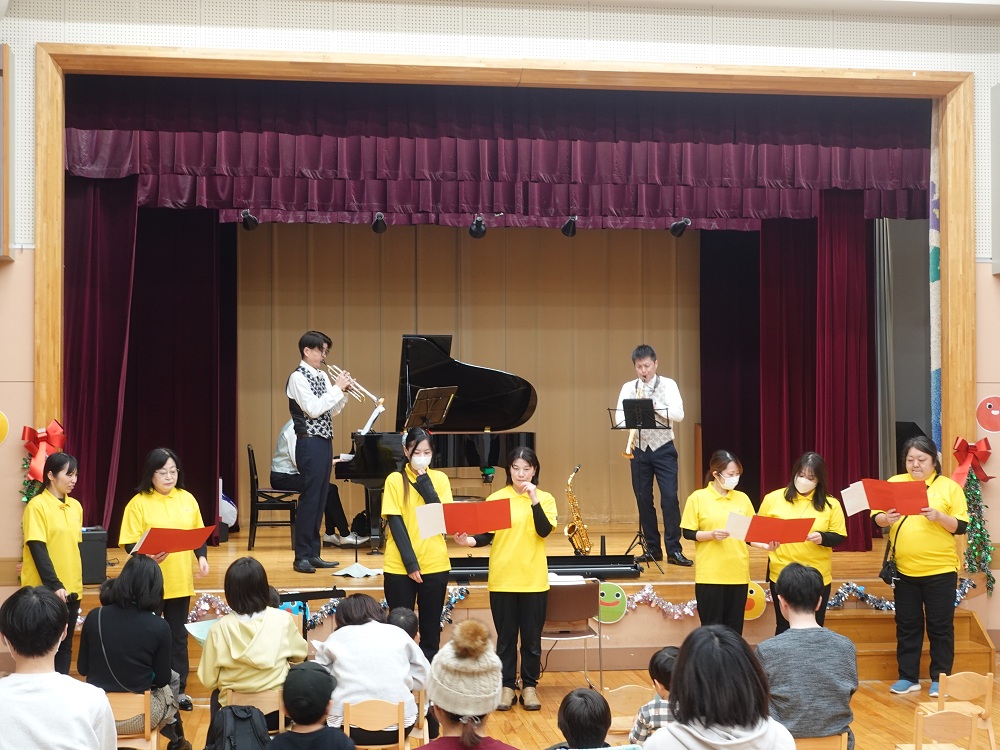 「赤鼻のトナカイ」では、子どもたちは手話を交えながら一緒に歌い、楽しいクリスマス会の雰囲気が一層盛り上がりました。