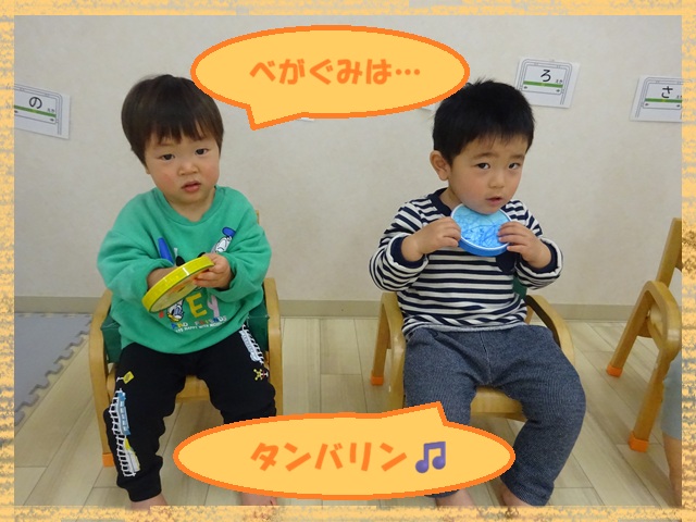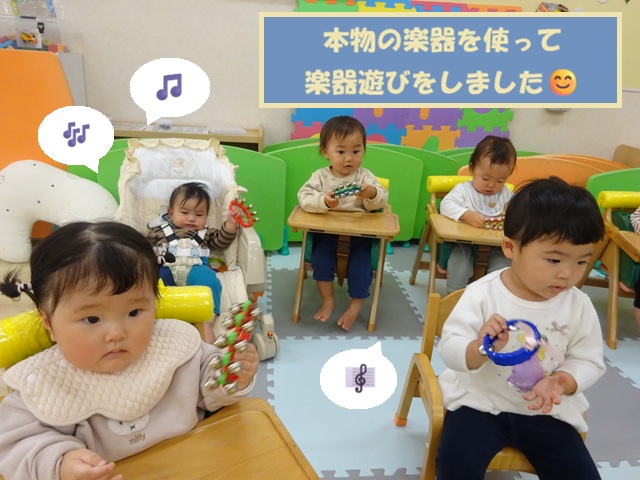 とある日の活動では楽器を使って音楽遊びもしました。
