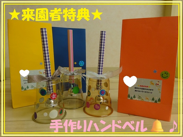 作ったハンドベルは、クリスマス会で保護者の方に向けての来園者特典になりました🎁♡