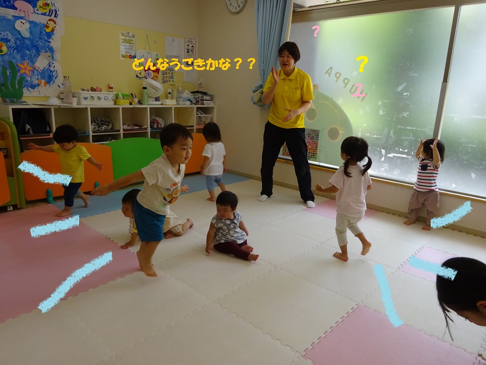 月齢に合わせて、ハイハイや高ばい、歩くなどの動きを取り入れています🎵