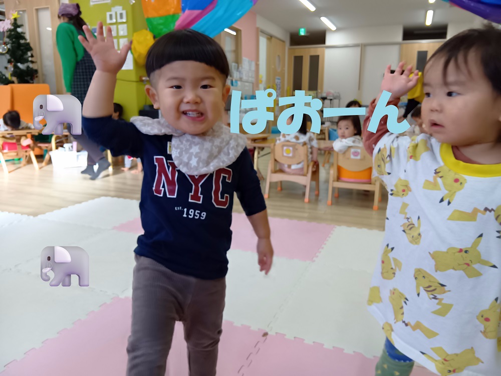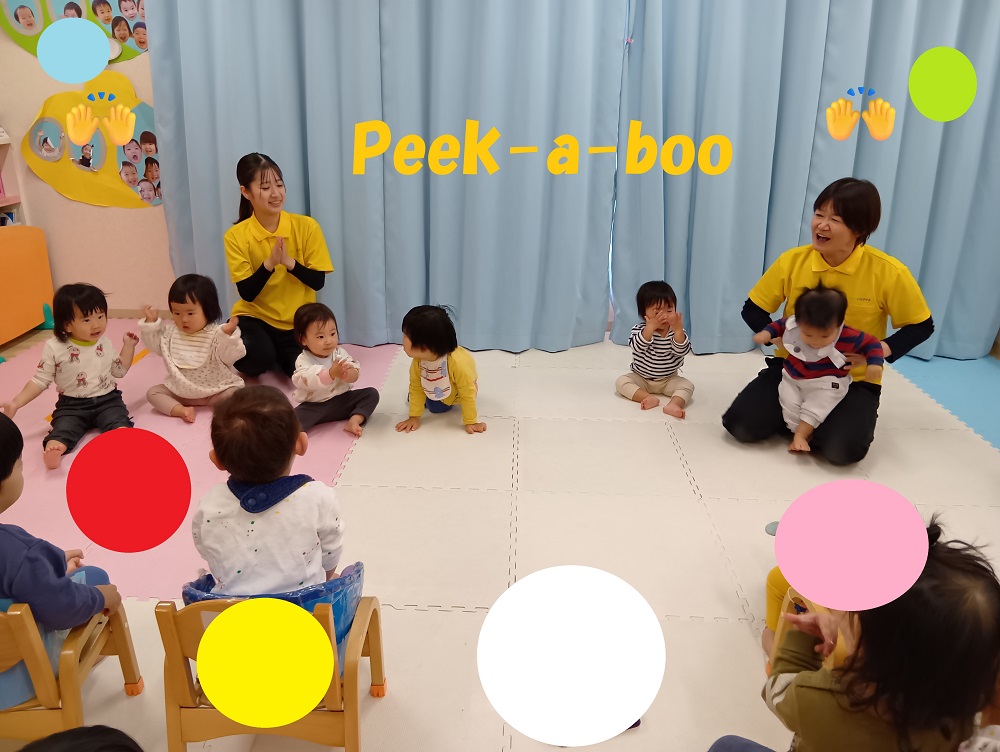 スピカ組(0歳児)はEnglish song「Peek-a-Boo」「ジングルベル」に合わせ、手作りマスカラで演奏🎶