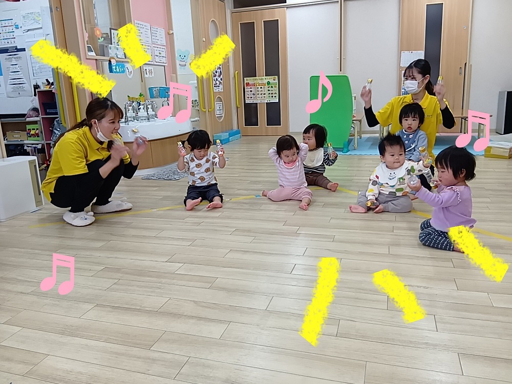 ベガ組(1歳児)はダンスと楽器に取り組みました!