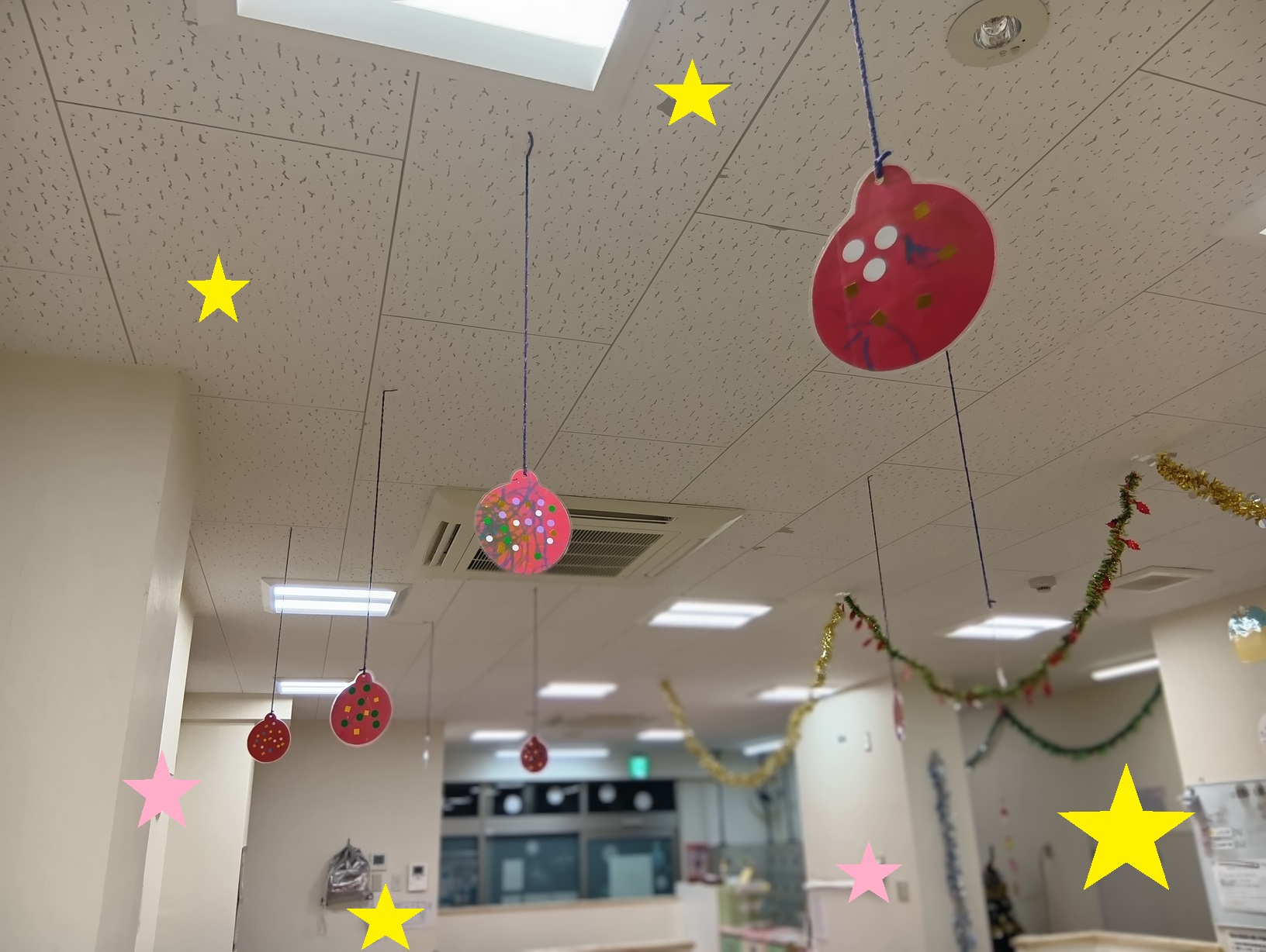 オーナメントは天井からつるし、素敵なクリスマスの飾りとなり子どもたちも大喜び☺️