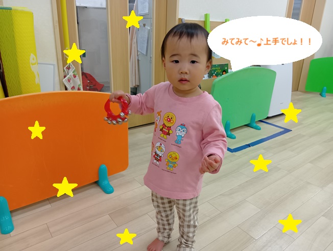 すずや手作りのマラカスを持って、綺麗な音を鳴らしてにっこり笑顔😊