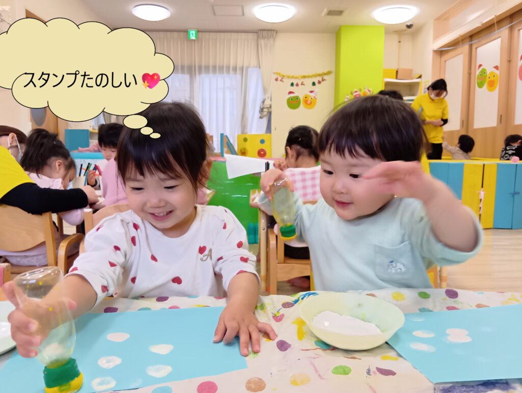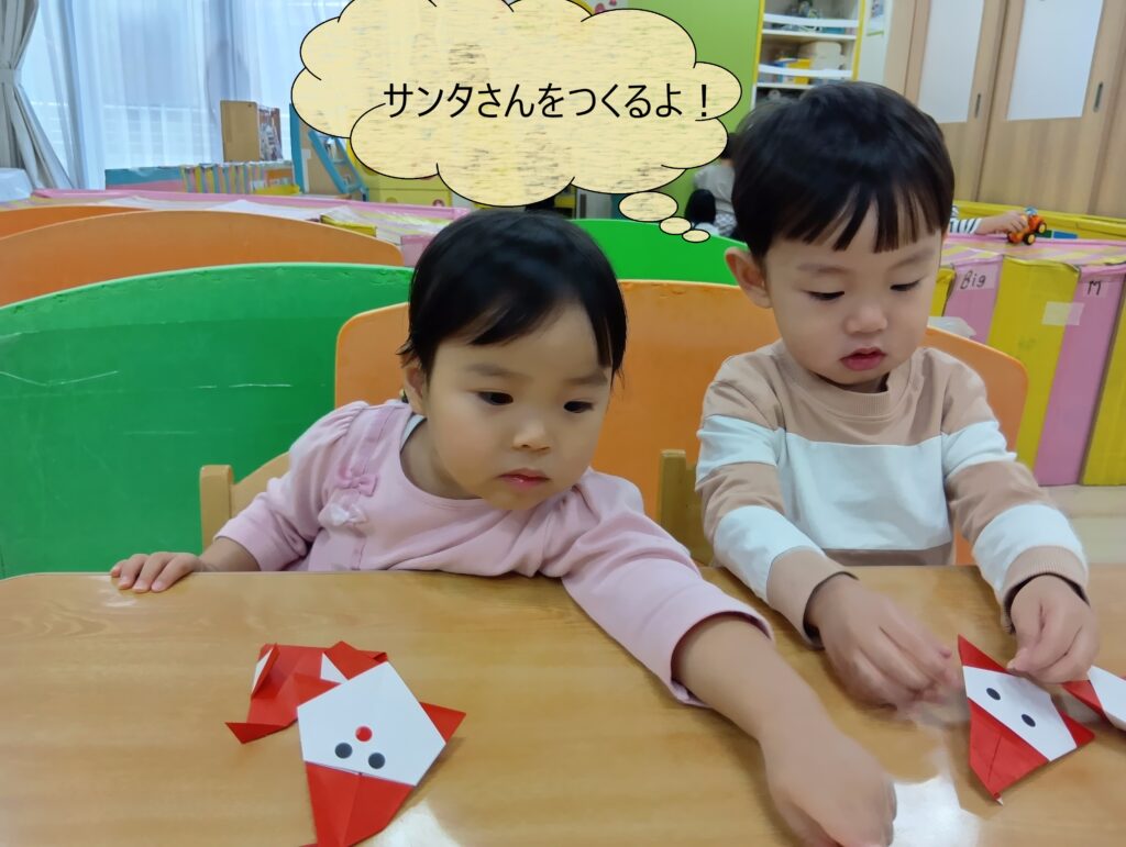 ベガ組(1歳児)は雪だるま、シリウス組(2歳児)は、サンタクロースを作っています。