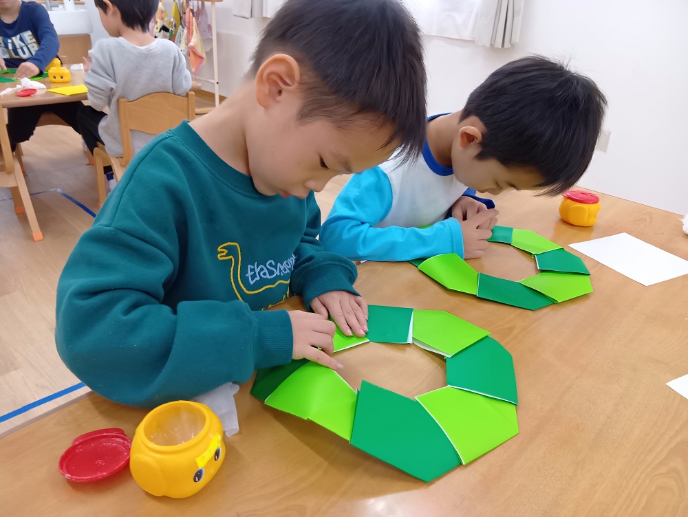 5歳児クラスになると、巧緻性領域の力の全てを網羅した作品ができるようになります。