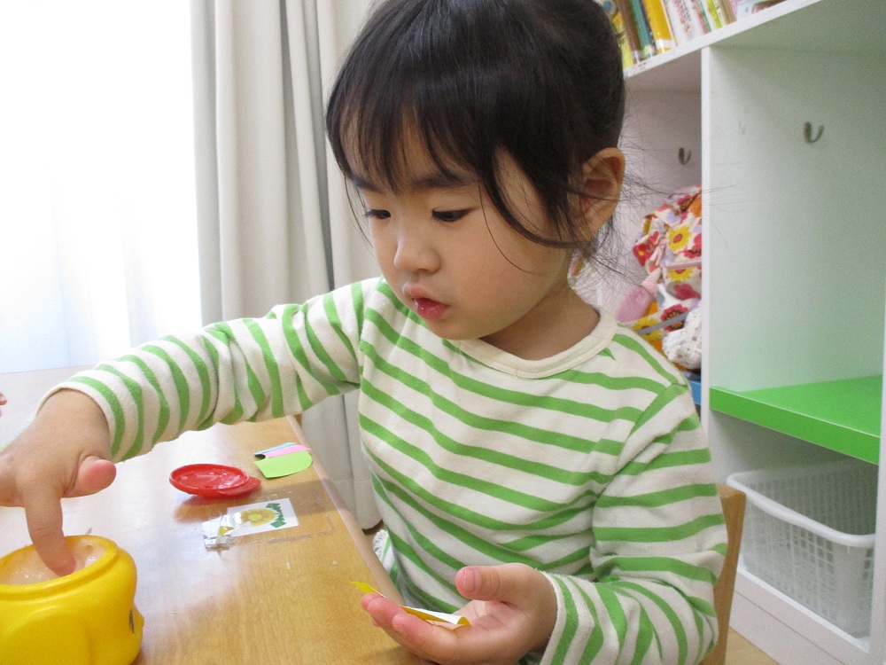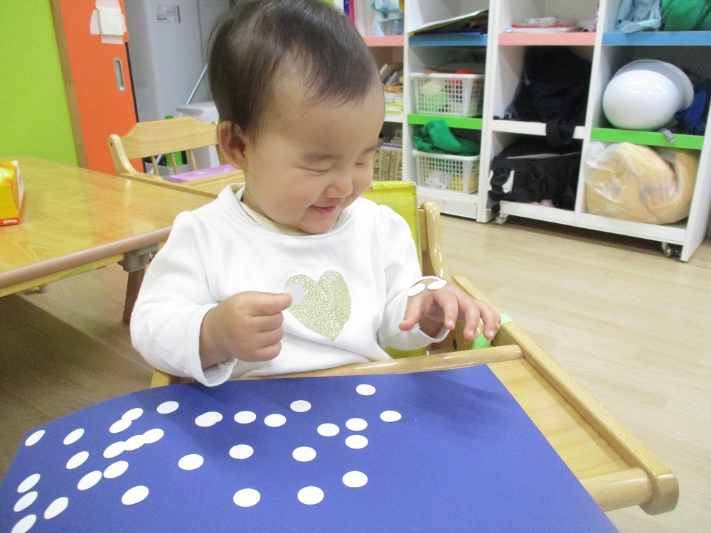 指先で上手にシールをつまんで貼れていますね✨