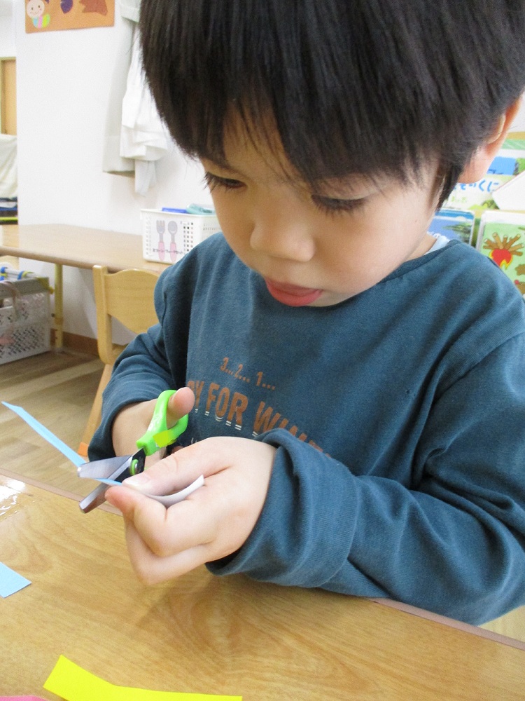本格的なハサミを使い始めるのは3歳児クラスからです。