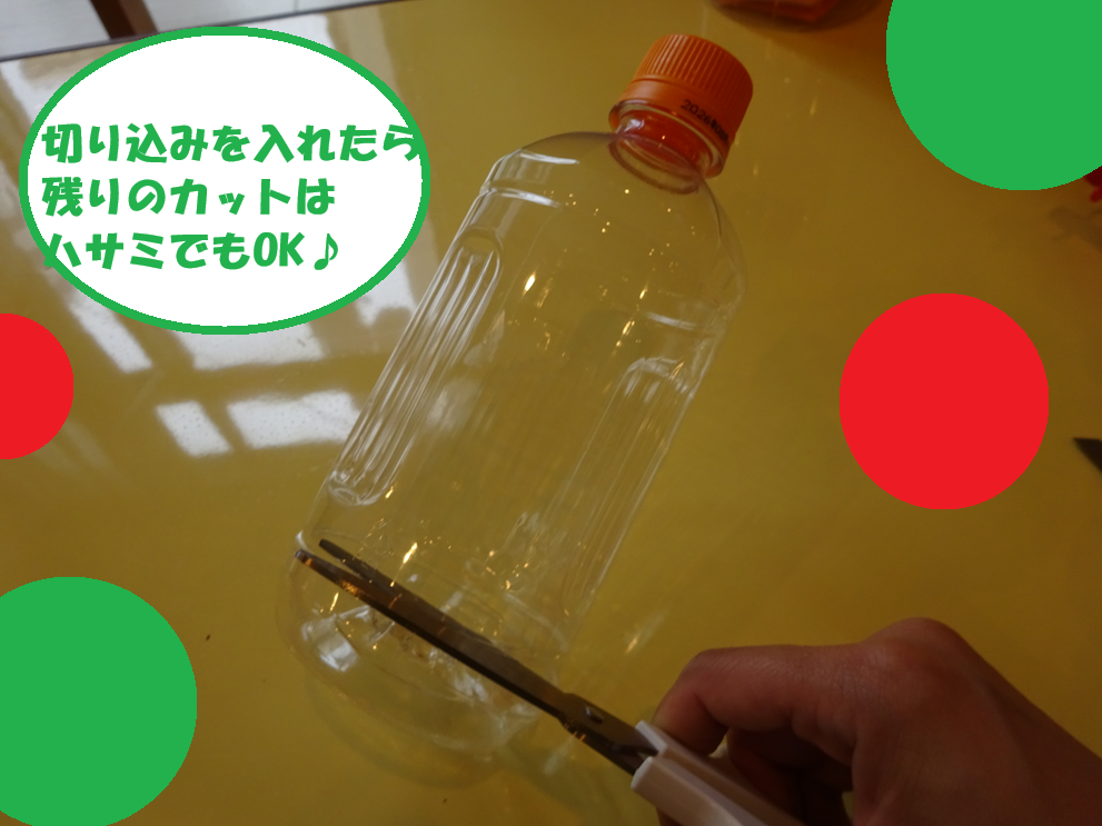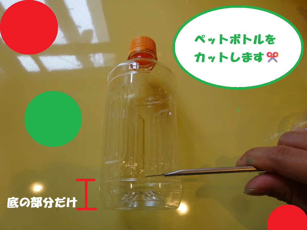 ペットボトルの底をカットします。