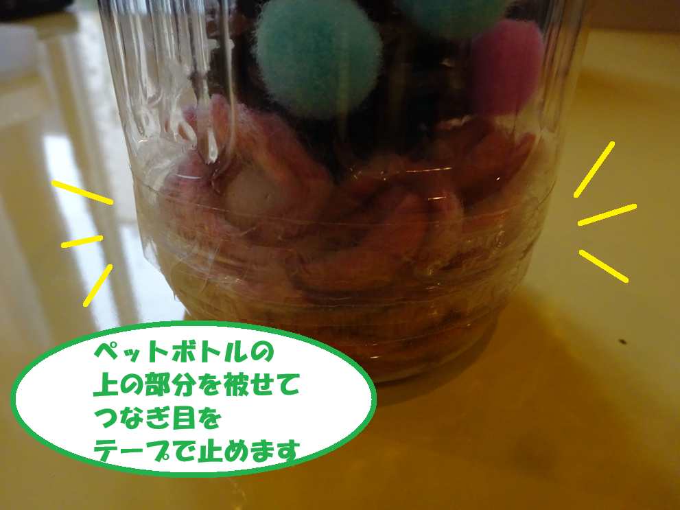 ペットボトルの上の部分を戻してテープで固定します。