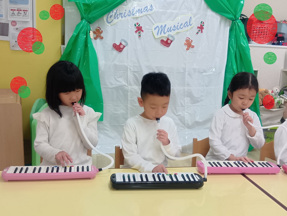 幼児クラスになると、ハンドベルやピアニカにもチャレンジ👍