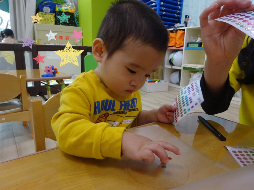 手先が器用になってきたので、小さなシール貼りもできるようになりました!