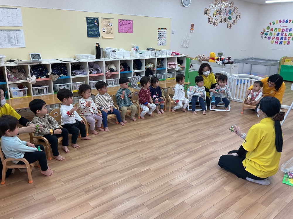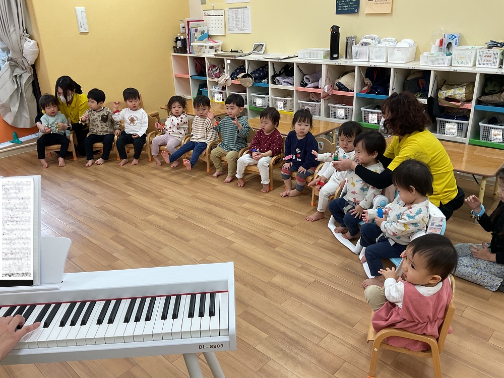 そしてこちらは、リゲル組(2歳児)の音楽遊びの様子です。